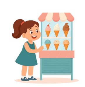 Elena es una niña de 8 años, quiere comer un helado de fresa y chocolate.